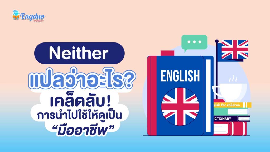 Neither เป็นคำที่มักพบได้บ่อยในการสนทนาภาษาอังกฤษ มีความหมายในเชิงปฏิเสธ มักใช้คู่กับ nor เป็น Neither…nor… ให้ความหมายว่า ไม่ทั้งคู่ หรือ ไม่ทั้งหมด เราควรฝึกการใช้ Neither เพื่อการสนทนาที่ราบรื่น และเป็นธรรมชาติเหมือนเจ้าของภาษา หรือหากอยากเรียนรู้ให้ลึกขึ้น สามารถสมัครเรียนภาษาอังกฤษ ด้วยคอร์สเรียนภาษาอังกฤษออนไลน์ กับสถาบันสอนภาษาอังกฤษ Engduo Thailand ซึ่งพร้อมด้วยครูชาวต่างชาติ สามารถฝึกคุยกับเจ้าของภาษา และมีครูที่มีมาตรฐานผ่านการอบรมจากทางสถาบันมากกว่า 300 ท่านและได้รับความไว้วางใจจากนักเรียนมากกว่า 30,000 คน รวมไปถึงมีคอร์สเรียนให้เลือกเรียนอย่างหลากหลาย เช่น ภาษาอังกฤษเพื่อการสื่อสาร, ภาษาอังกฤษเพื่อการสัมภาษณ์งาน และภาษาอังกฤษสำหรับองค์กร เป็นต้น